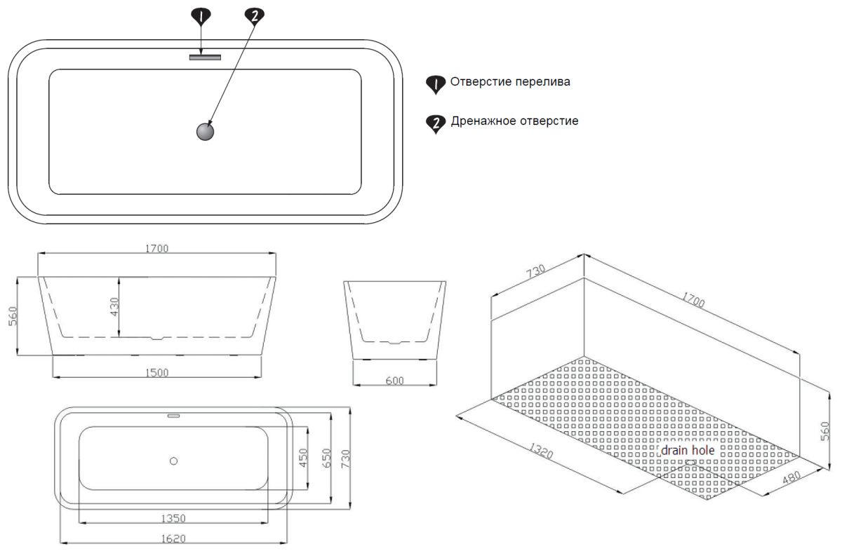 Акриловая ванна AZARIO WALESA AZ-M702S 1700х730х560 купить
