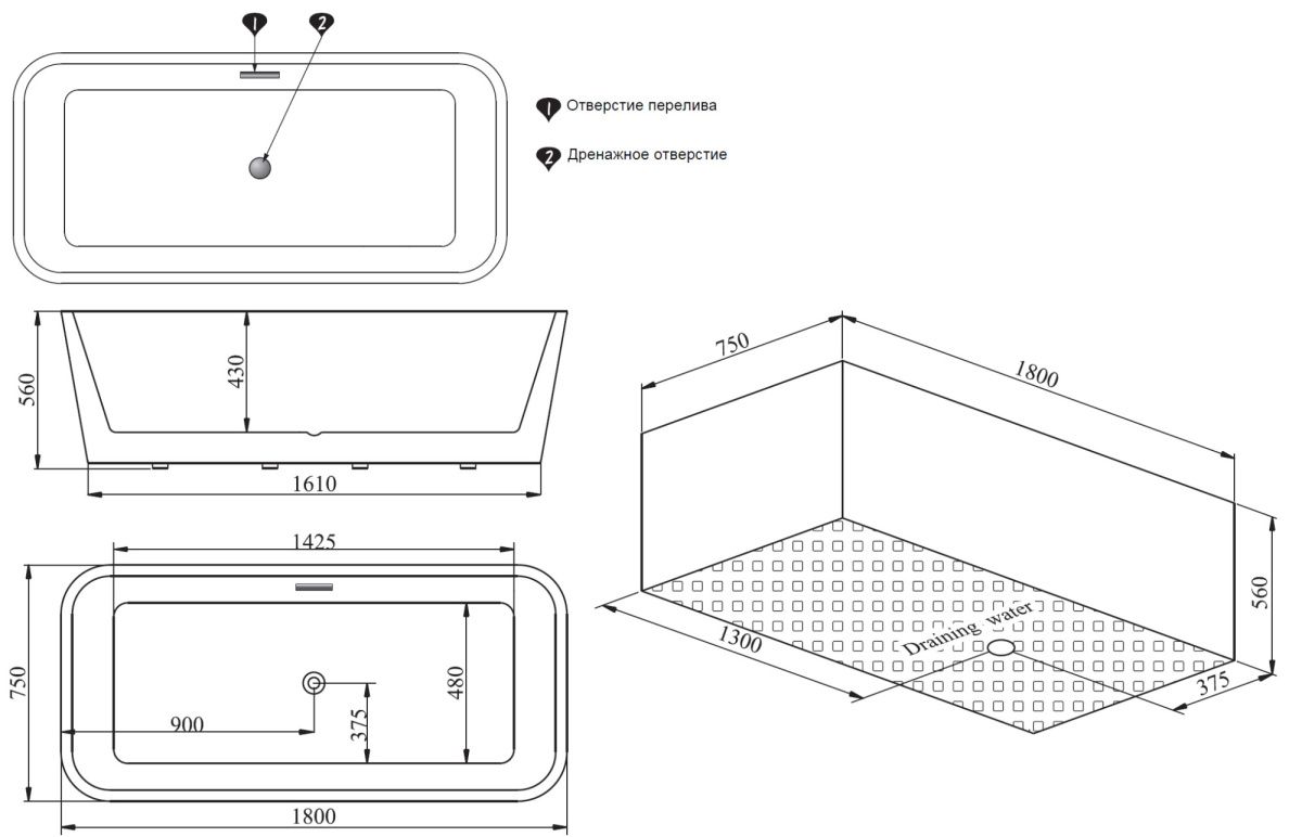Акриловая ванна AZARIO WALESA AZ-M702 1800х750х560 отдельностоящая купить