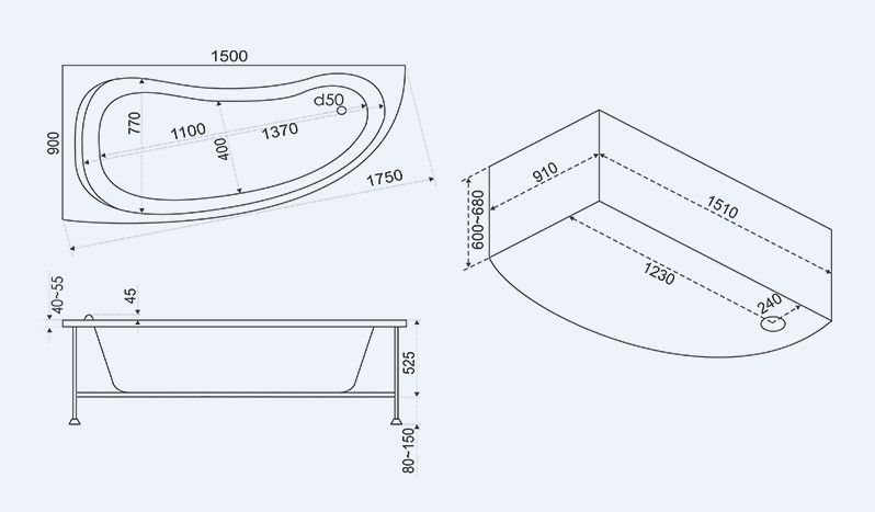 Акриловая ванна Bas Алегра 150x90 см левая без гидромассажа купить