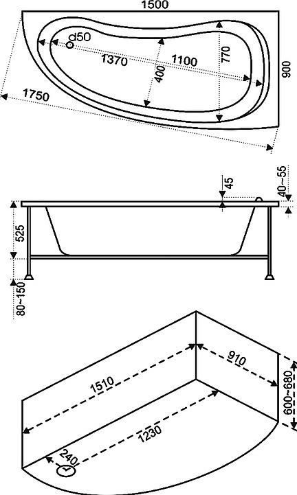 Состав поставки: Ванна, Каркас