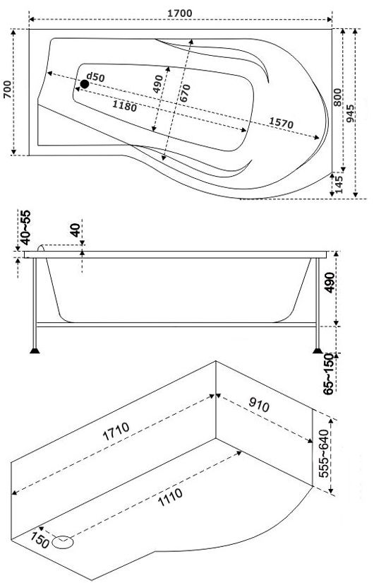 - Размеры: 1700 x 800 мм