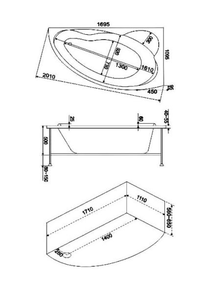 - Кран-регулятор (кран-баланс) только при наличии спинного массажа;