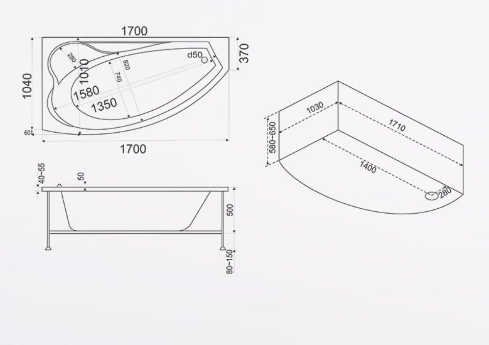 Акриловая ванна Bas Николь 170x100 см левая без гидромассажа купить