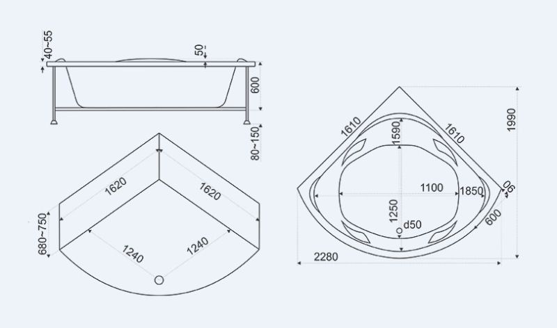 - Размеры: 1610 х 1610 мм