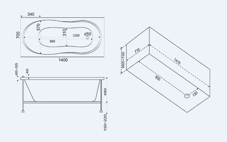 Акриловая ванна BAS Тесса 140x70 с каркасом купить