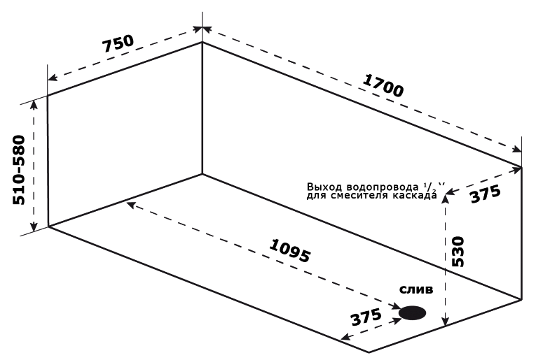 Стандартные размеры, см:170x75