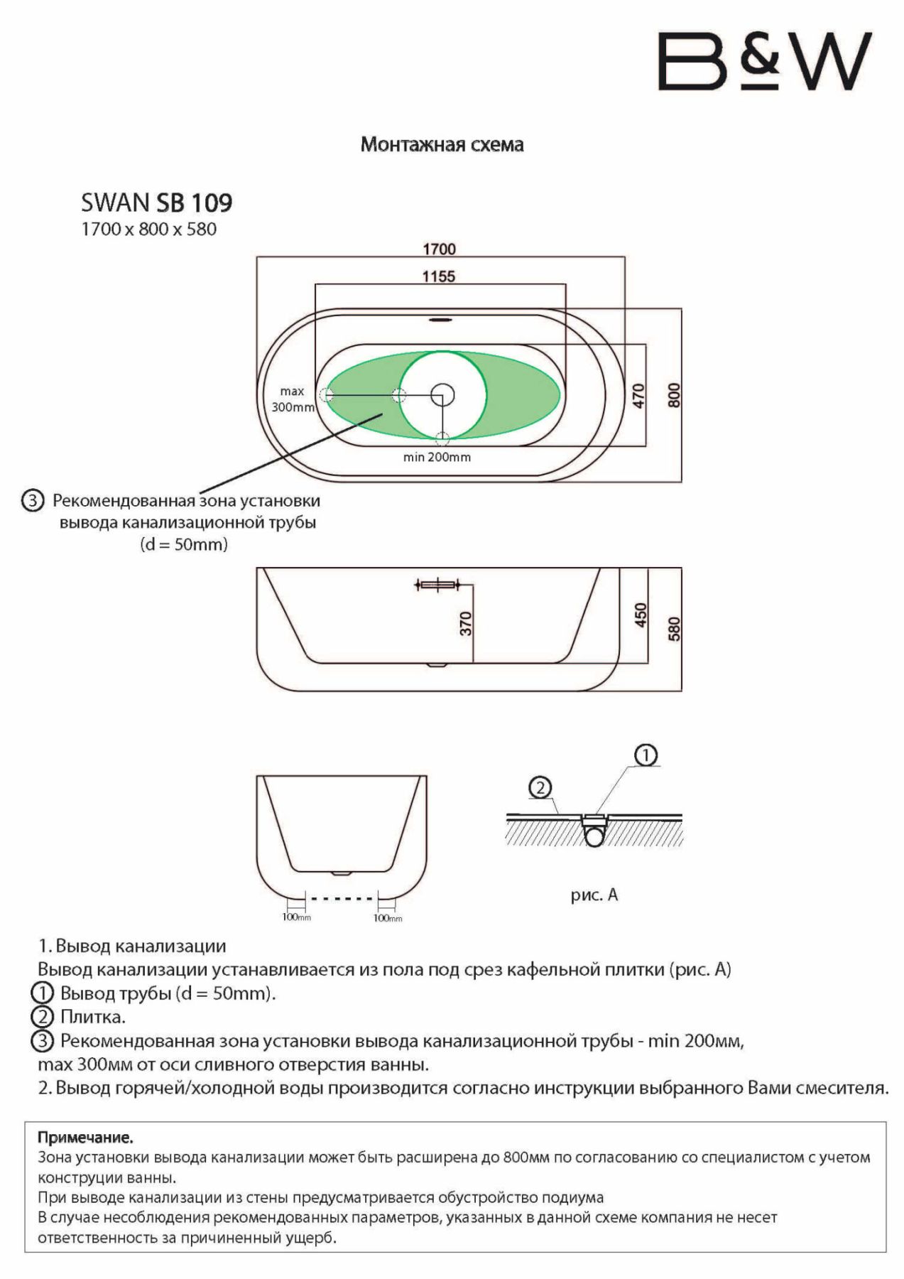 Акриловая ванна Black & White Black Swan 109SBBL 170 x 80 см Акриловая ванна Black & White Black Swan 109SBBL 170 x 80 см Казань 97200.00 {old_price} Black and White