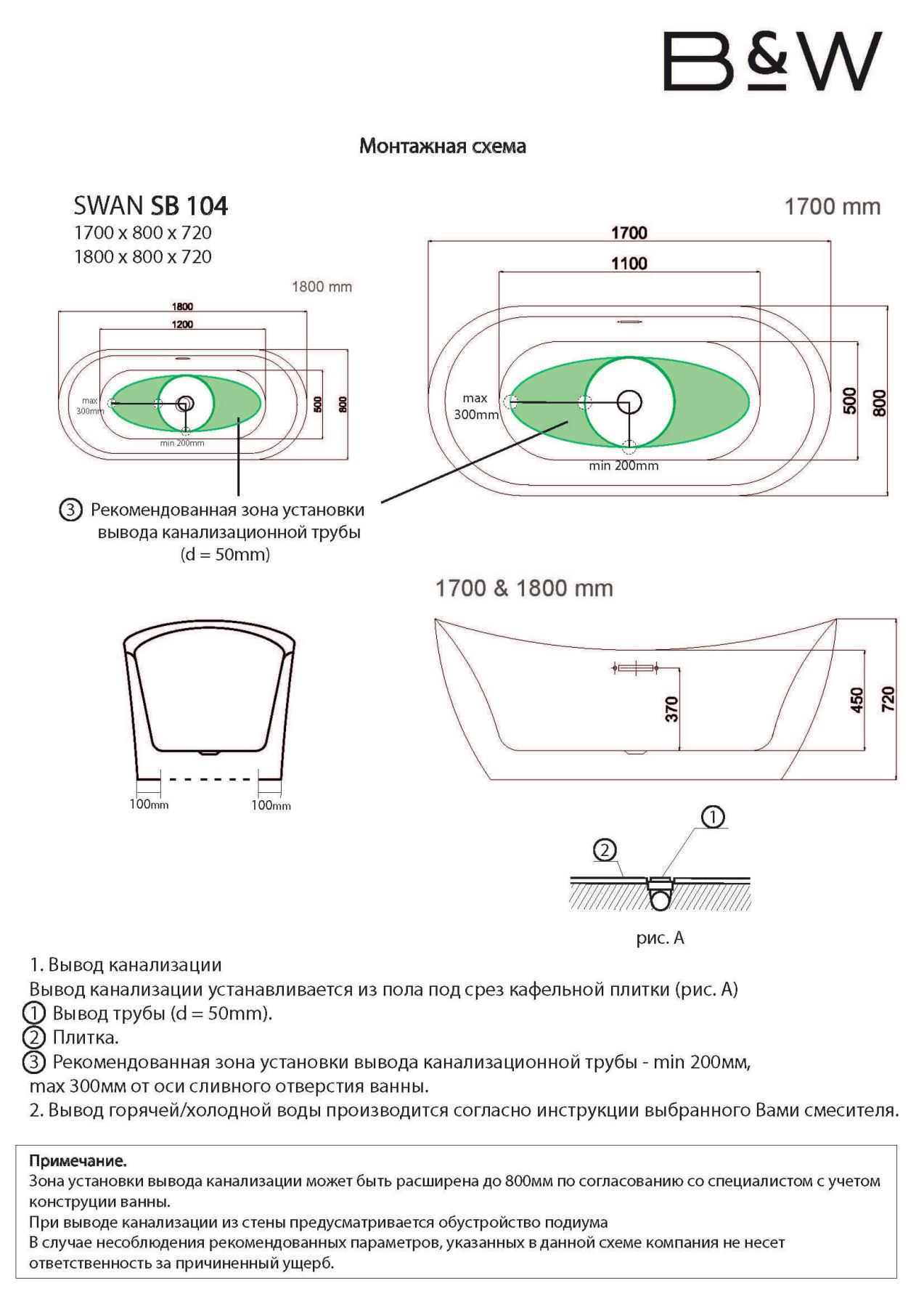 Акриловая ванна Black & White Swan 104SB00 180 x 80 см Акриловая ванна Black & White Swan 104SB00 180 x 80 см Казань 109800.00 {old_price} Black and White