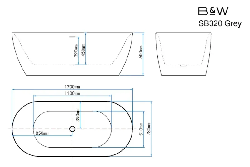 Акриловая ванна Black&White Swan SB320 Grey 170x78 320SBGR. Характеристики: