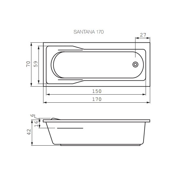 Акриловая ванна Cersanit SANTANA 170х70 купить