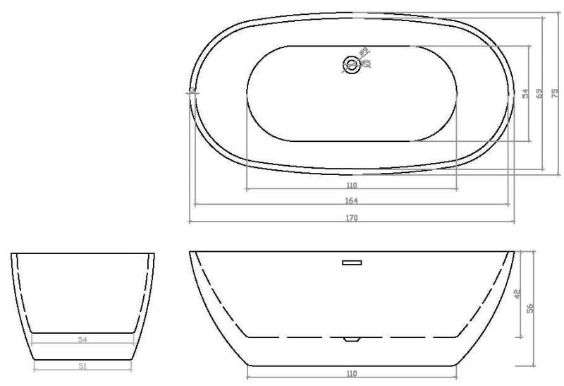 Ванна d'ISEO акриловая отдельностоящая Cerutti SPA (1700x750x560)