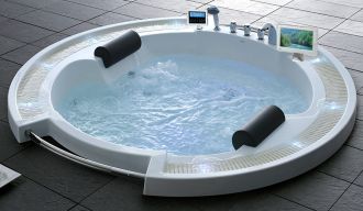 Аэромассаж естьВ комплекте подсветка бортика ванныГидромасса жестьЗащита от сухого пуска естьИсполнение форсунок хромКаркас есть, в комплектеКомплектация смеситель с изливом, душевая лейкаМассаж спины естьМатериал акрилМощность насоса, Вт 1500Мультимедиа TV 8", пульт ДУ, радиоОбъем, л 550Озонирование естьПодголовник есть, в комплектеРегулировка интенсивности массажа естьСлив-перелив есть, в комплектеТип управления электронноеУстановка встраиваемаяФорма круглаяФорсунок аэромассажа 16Форсунок гидромассажа 16Хромотерапия естьБренд GEMY