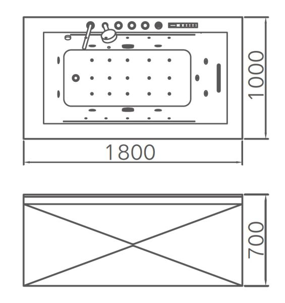 - Комплектация каскадный массаж, смеситель с изливом, душевая лейка