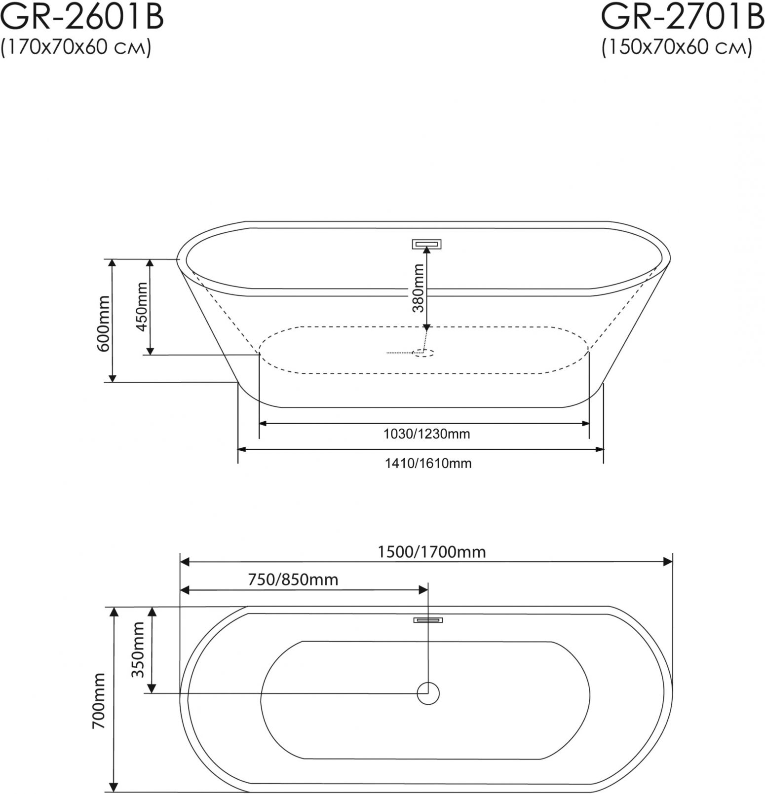 Акриловая ванна Grossman 170x70см чёрный GR-2601B Акриловая ванна Grossman 170x70см чёрный GR-2601B Казань 62216.00 80800.00 Grossman