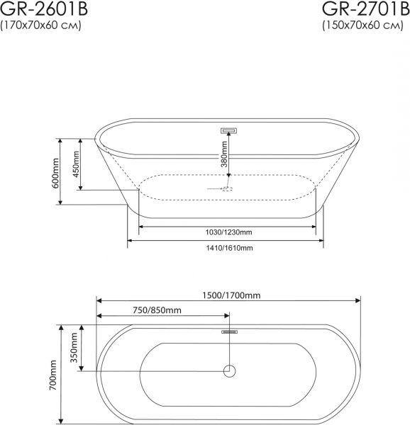 Акриловая ванна Grossman 170x70см чёрный GR-2601B купить