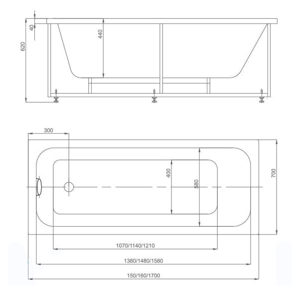 - Ванна изготовлена из сантехнического акрила ALTUGLAS.