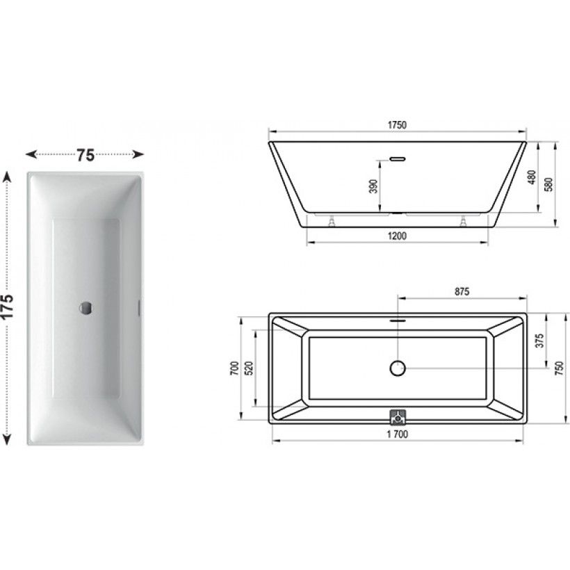 Акриловая ванна Ravak FREEDOM R 1750х750 XC00100021 отдельностоящая купить