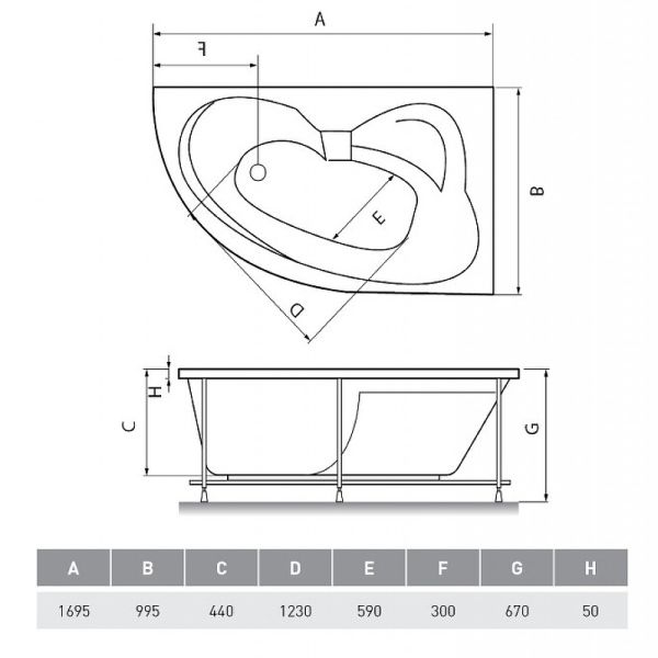Акриловая ванна Relisan Eco Plus Эльба 170х100 R Гл000023039 без гидромассажа