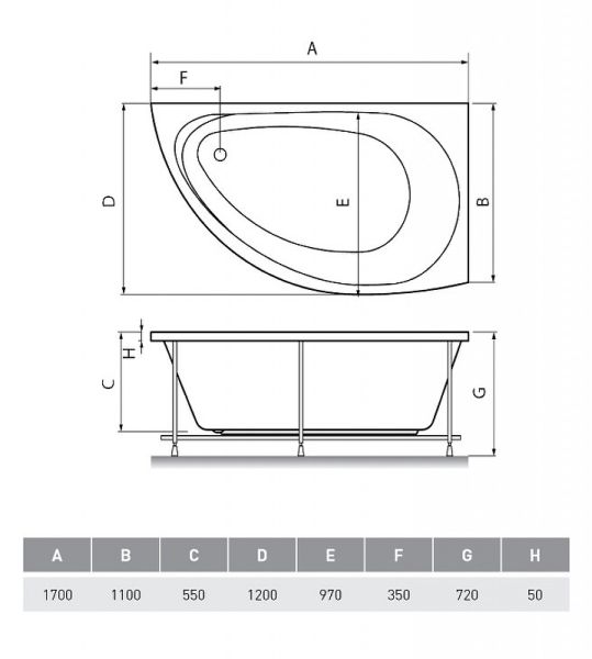 Акриловая ванна Relisan Eco Plus Ибица 170х120 R Гл000023038 без гидромассажа купить