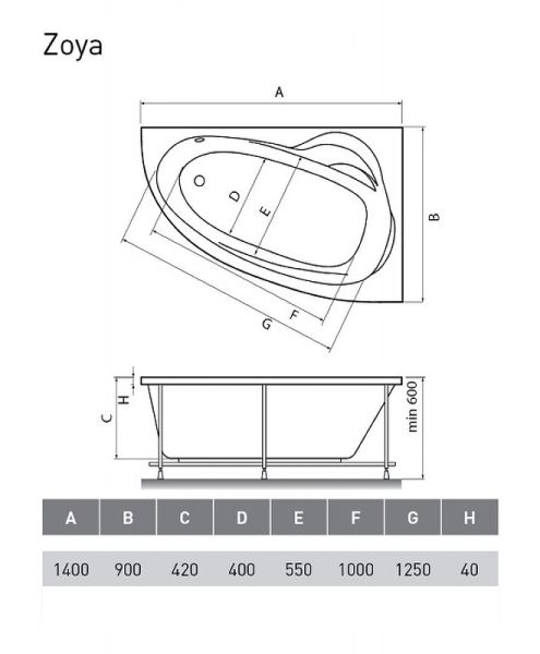 Акриловая ванна Relisan Zoya 140x90 R Гл000001248 без гидромассажа