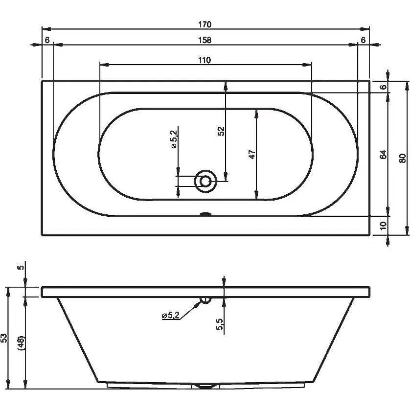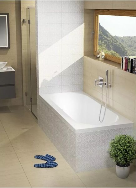 Прямоугольная акриловая ванна RIHO CAROLINA 170x80 изготовлена из высококачественного листа акрила глянцевого белого цвета