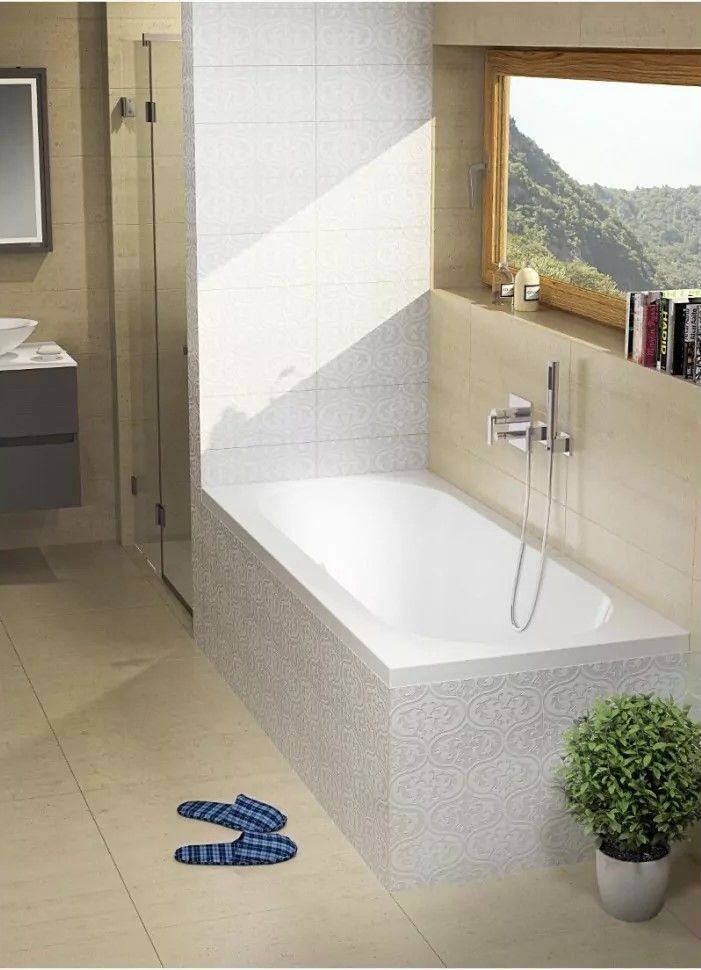 Прямоугольная акриловая ванна RIHO CAROLINA 190x80 изготовлена из высококачественного листа акрила глянцевого белого цвета