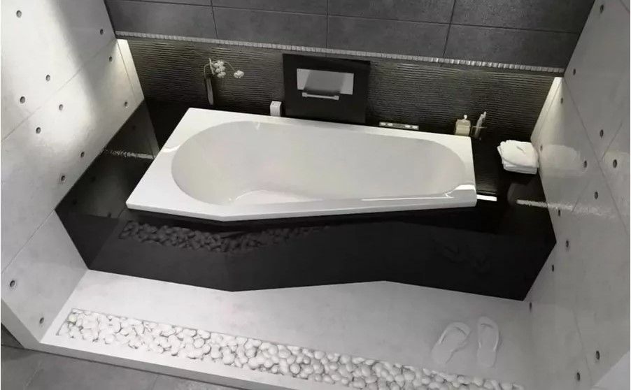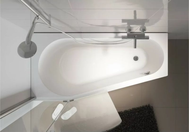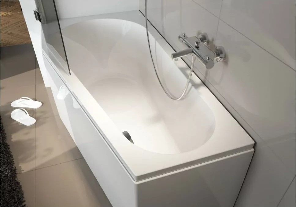 Линейка RIHO Delta - комбинированное решение "ванна-душ", разработанное так, чтобы в широкой части ванны можно было удобно принимать душ и комфортно лежать.