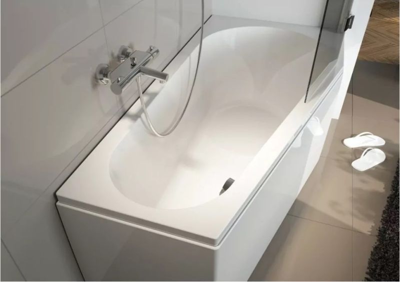 Материал непористый и гладкий, поэтому на нём не остаются известковый налёт и бактерии, поверхность ванны легко очищается.