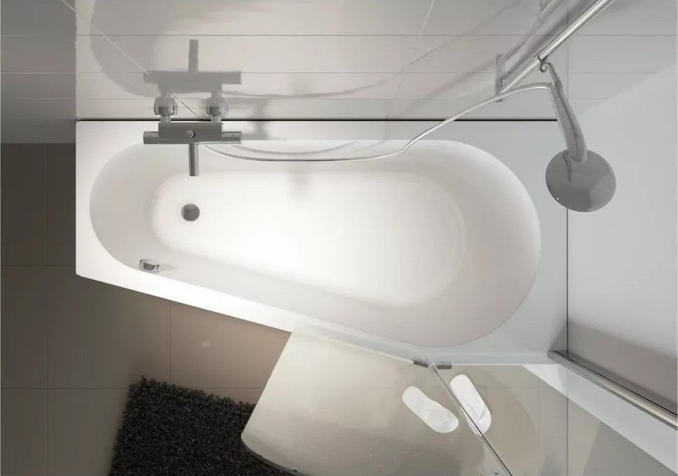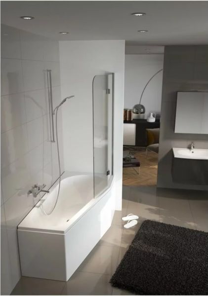 Линейка RIHO Delta - комбинированное решение "ванна-душ", разработанное так, чтобы в широкой части ванны можно было удобно принимать душ и комфортно лежать.