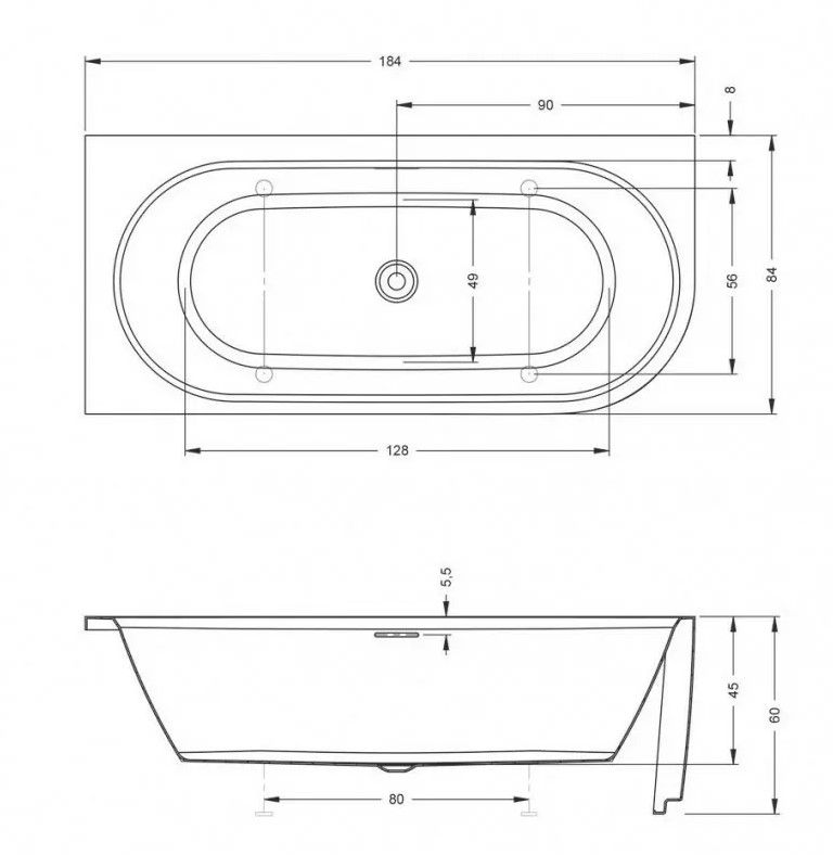 Белая глянцевая ванна поставляется в стандартной комплектации с хромированным сливом переливом