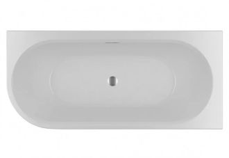 Асимметричная матовая белая акриловая ванна RIHO DESIRE CORNER 184х84 L VELVET (радиусная часть слева) с двойными стенками, со встроенным переливом и нажимным донным клапаном.