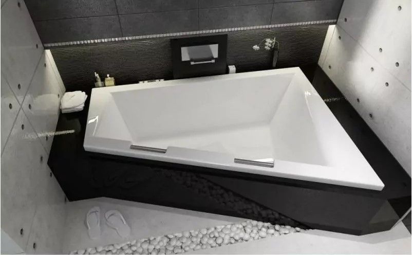 Две хромированные ручки, встроенные в бортик ванны, придают ей роскошный вид.