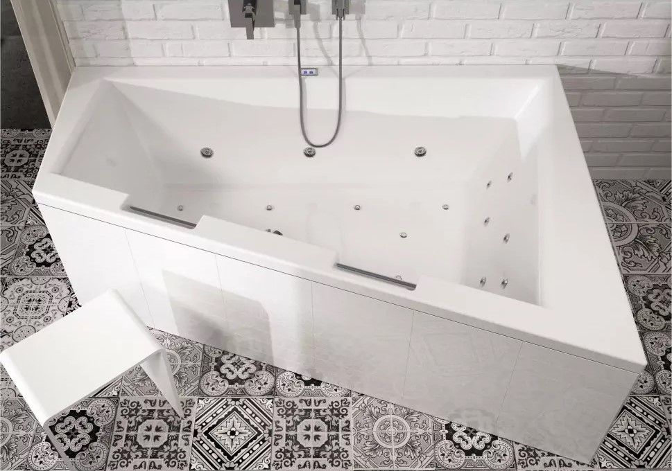 Асимметричная акриловая ванна RIHO Doppio 180х130L изготовлена из высококачественного листа акрила глянцевого белого цвета.