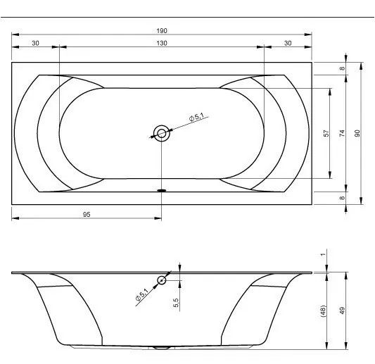 Материал непористый и гладкий, поэтому на нём не остаются известковый налёт и бактерии, поверхность ванны легко очищается.