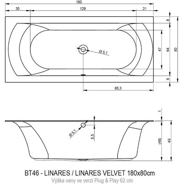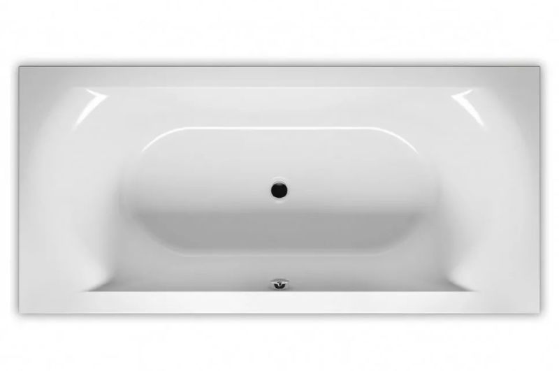 Прямоугольная? ванна RIHO Linares 180x80 R Plug & Play, из глянцевого белого акрила с закругленной внутренней формой и центральным сливом, представляет собой полностью собранную на заводе конструкцию.
