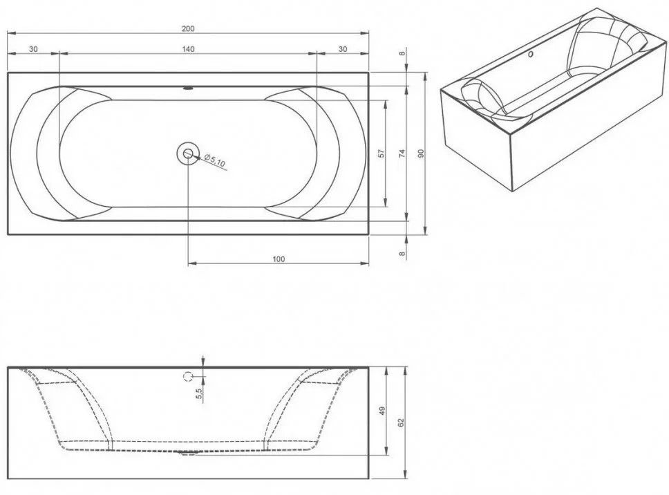 ?Длинная и короткая стороны ванны оснащены сразу отлитыми панелями, изготовленными из того же акрилового материала, что и ванна. Всё идеально, никаких швов!