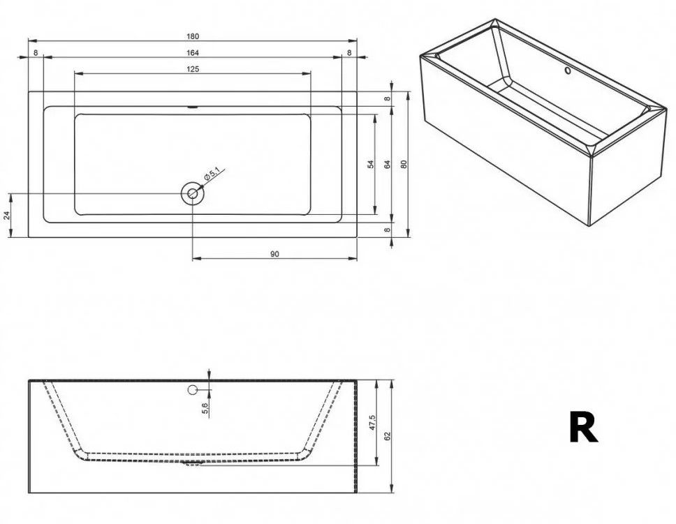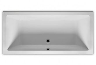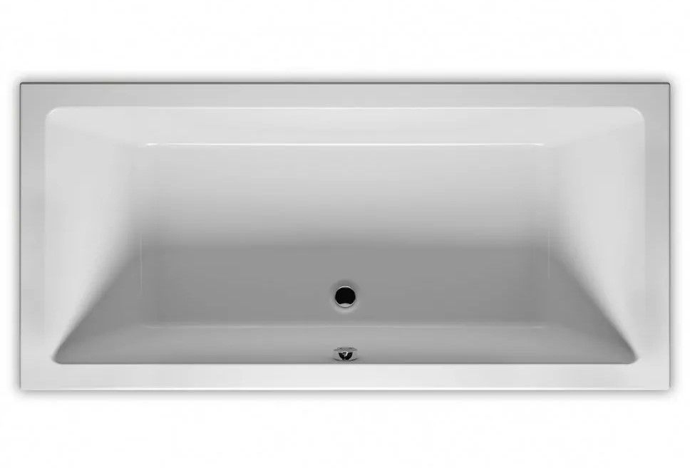 Прямоугольная? ванна RIHO Lugo 180x80 R Plug & Play, из глянцевого белого акрила с прямыми симметричными спинками, гладкой внутренней формой и центральным сливом, представляет собой полностью собранную на заводе конструкцию.