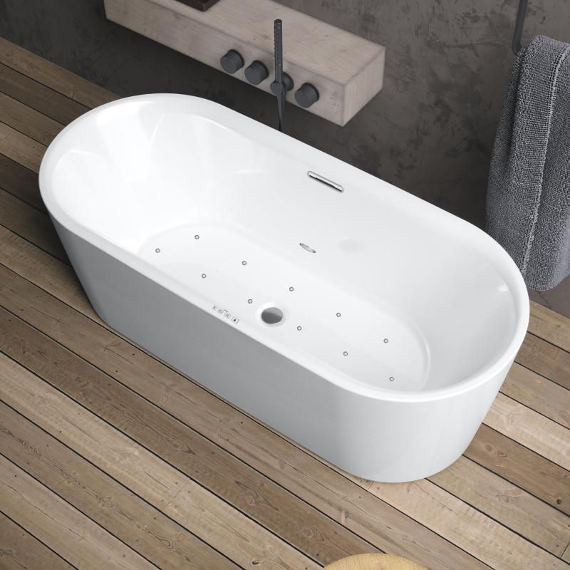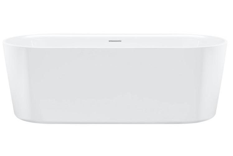 Отдельностоящая белая глянцевая ванна Riho Modesty 170х76 Fall своего названия: ванна сочетает в себе роскошный внешний вид с комфортом и удобством для пользователя, не будучи эксцентричной. Это ванна овальной формы с красивым тонким бортиком.