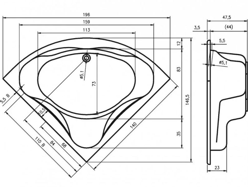 Большое внутреннее постранство, классическая компоновка, высокое качество исполнения делают купание в этой ванне очень приятным.