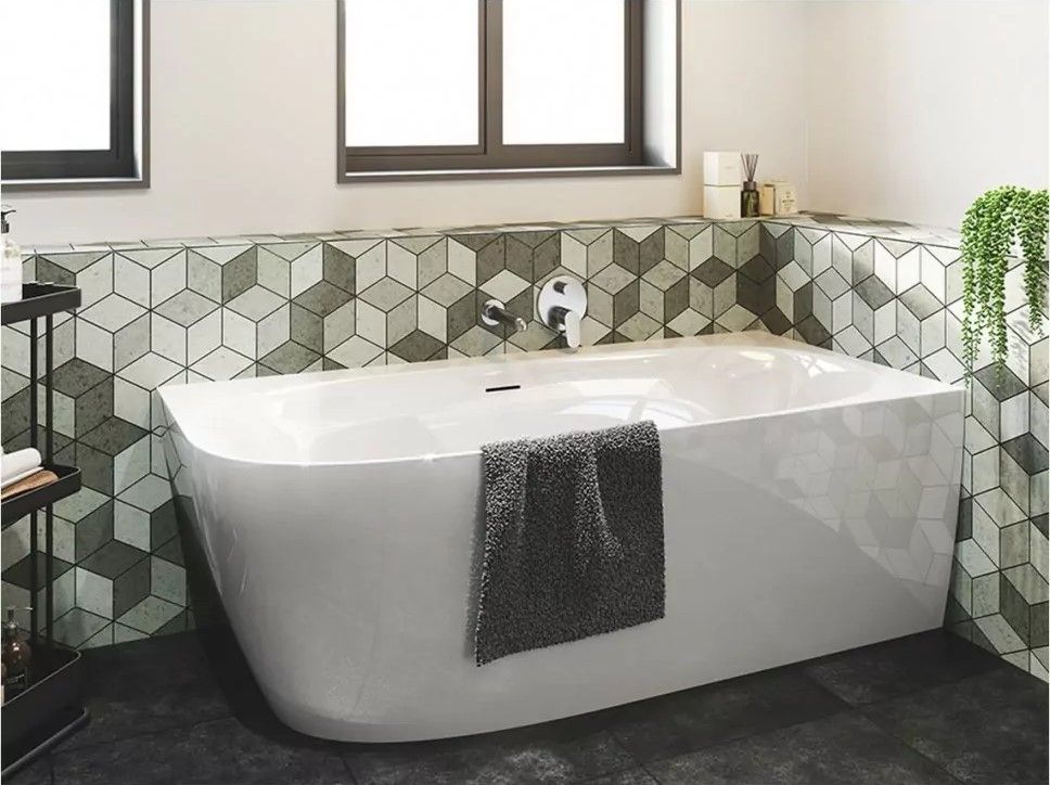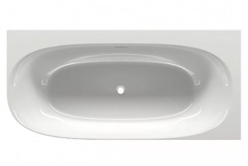 Отдельно стоящая угловая, глянцевая белая акриловая ванна RIHO Omega CORNER 170х80 L с тонкими двойными стенками, со встроенным переливом.