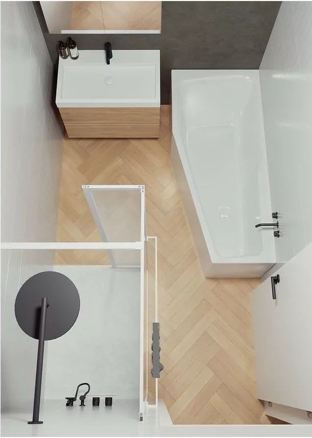 Тонкие борта ванны создают большое внутреннее пространство, где удобно лежать и принимать душ.
