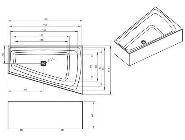 Отдельно стоящая асимметричная ванна RIHO Still Smart 170x110 L PLUG & PLAY, из глянцевого белого акрила, которая имеет очень удобную и просторную лежачую сторону. Ванна не занимает много места в ванной комнате благодаря скошенной форме ножной части.
