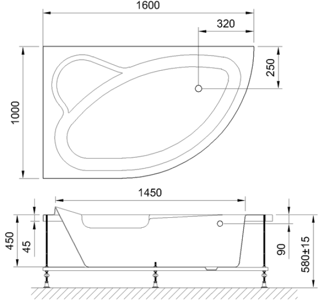 Акриловая угловая ванна ALPINE 160x100x58 имеет ассиметричную форму с четкими линиями изгибов что позволяет ей отлично гармонировать практически в любом интерьере. Анатомическая, округлая форма чаши позволяет комфортно разместиться в ней одному человеку, а диагональное расположение позволяет разместить в углу просторное сидение.