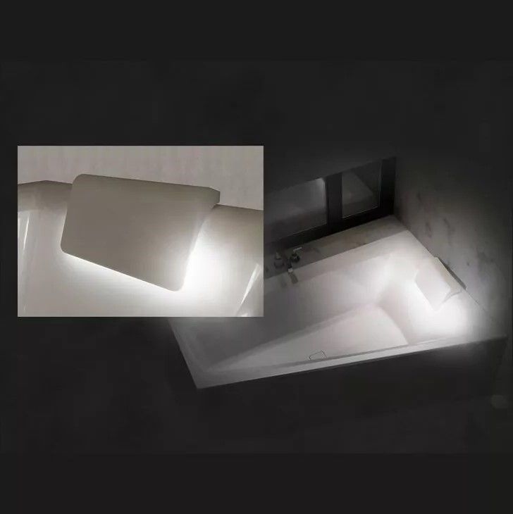 перелив). Тогда отдельный кран не потребуется. Подголовник выполнен с LED-подсветкой. Глянцевый белый слив-перелив и подголовник входят в комплектацию ванны.