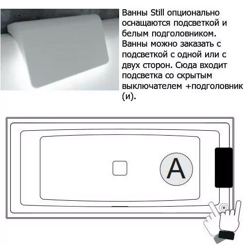 Акриловая ванна с подсветкой Riho Still Square LED B099003005 180х80см светодиоды и подголовник справа белый купить
