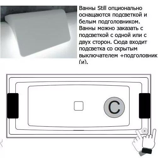 Акриловая ванна с подсветкой Riho Still Square LED B099005005 180х80см светодиоды и подголовники с двух сторон белый купить