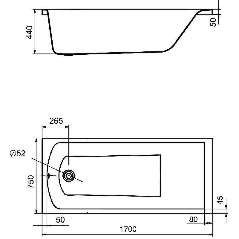 Размеры ванны (см)