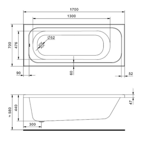 Размеры ванны (см)