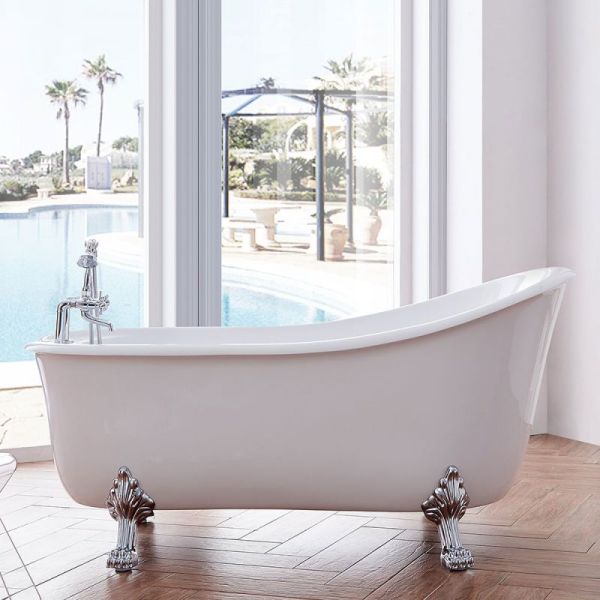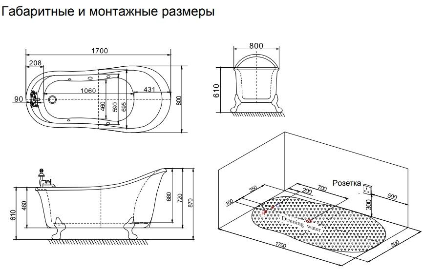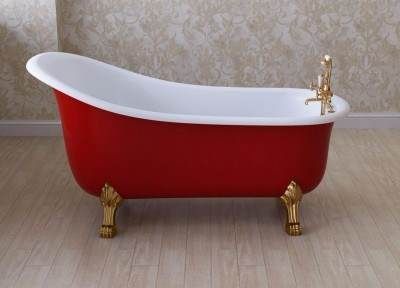 Ванна акриловая на лапах + смеситель,хром.Цвет красный. Фурнитура -золото