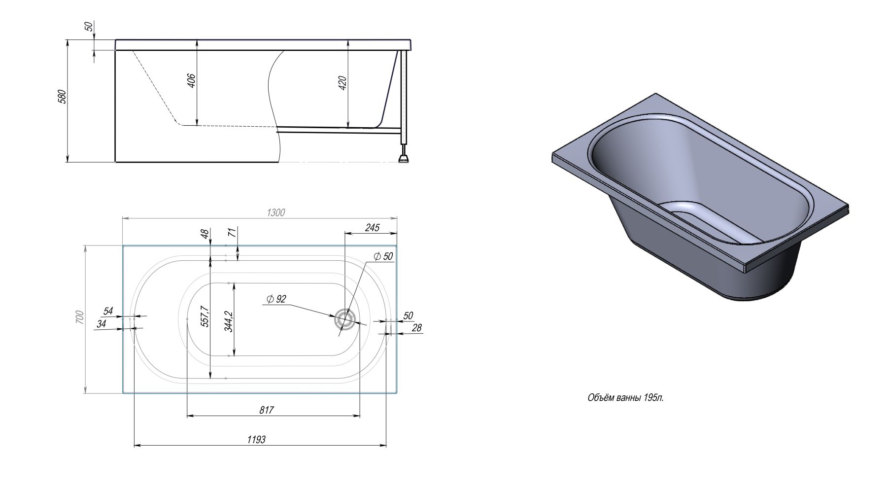Акриловая ванна Timo Roha ROHA1370 130x70 см купить